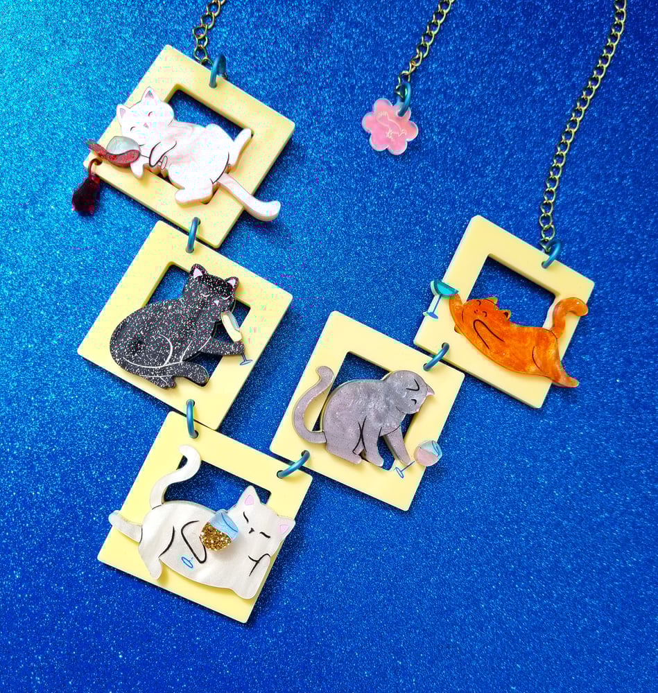 Designed, cut, and hand-assembled in Australia and New Zealand. I work hard to ensure that each piece is to a high quality and in a condition I would wear, but given that each item is handmade, please be aware that there may be slight imperfections due to variations in acrylic thickness, fiddly pieces, and the nature of glue and resin. These imperfections are part of the charm of handmade jewellery. You'll walk away knowing you're wearing my art, and only a limited number of people can do the same.