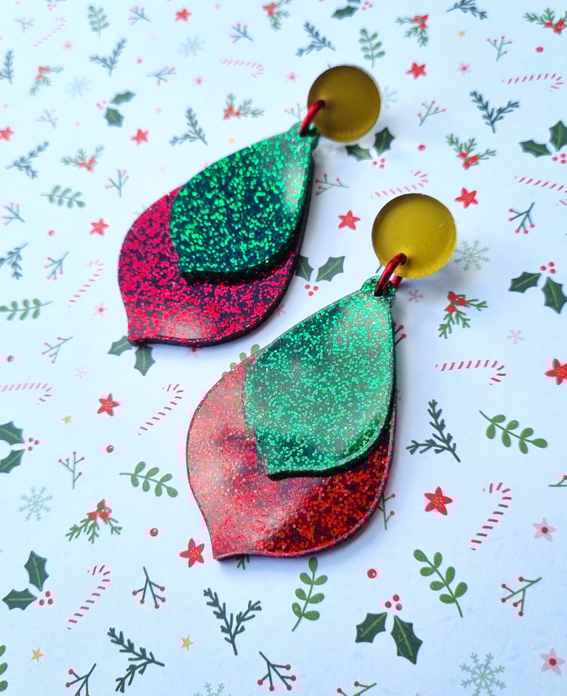 Sometimes the only jewellery you need is something that compliments an outfit, not be the outfit itself. But it's Christmas, so you know it has to be festive and glam. Check out these glittery earrings in 3 colourways.