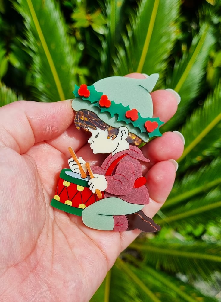The Little Drummer Boy is one of my favourite Christmas Carols so I had to make him as a brooch. He's just so sweet! And he's perfect for double brooching, especially with my Away in a Manger brooch.