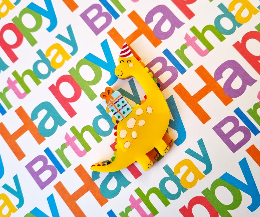 If you're invited to a birthday party, never show up empty handed! Be a good dino friend, and bring a big smile (and maybe a present, too?). You'll be a hit at the event, radiating sunshine happiness!